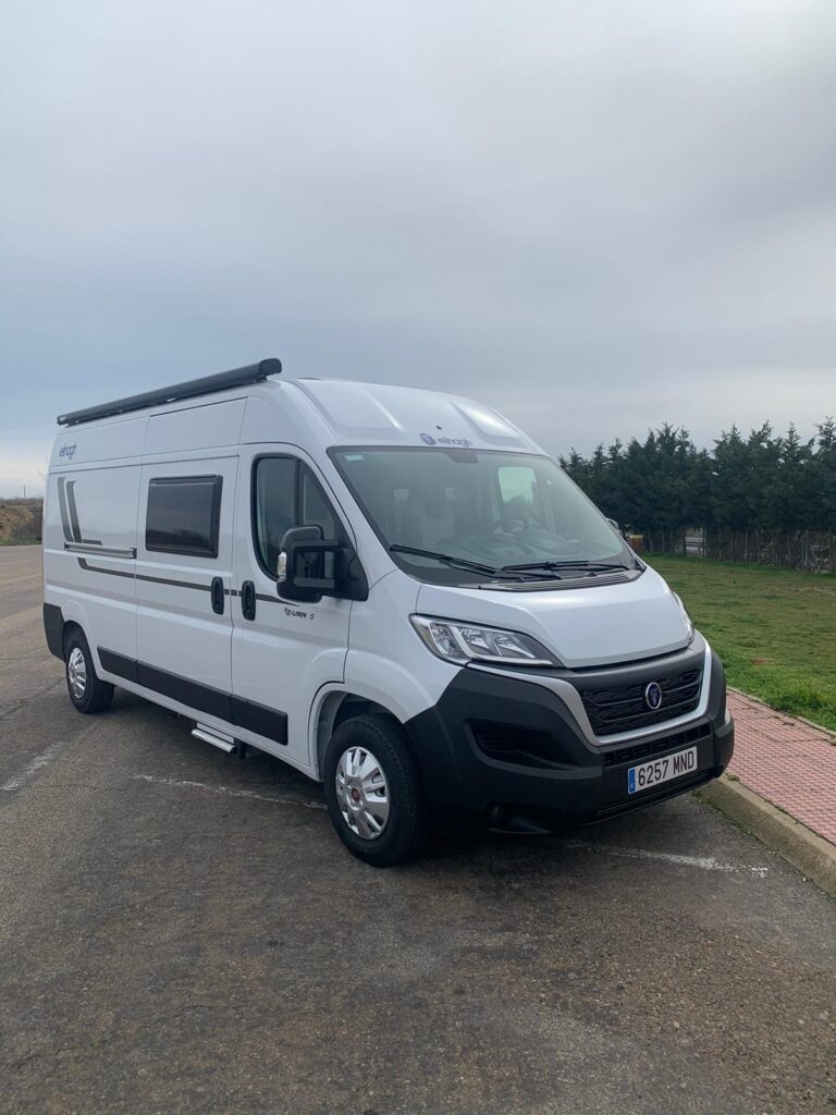 Vehículo del 2024, gama alta. Dos camas de matrimonio, apto para 5 pasajeros pero sin cama extra. Cama trasera 130×210, cama basculante 115×95. Alquilamos con todo incluido: IVA, sábanas y toallas, menaje de cocina, aparcamiento para vuestro vehículo y kilometraje ilimitado a partir del 8º día de alquiler. Fianza 700€