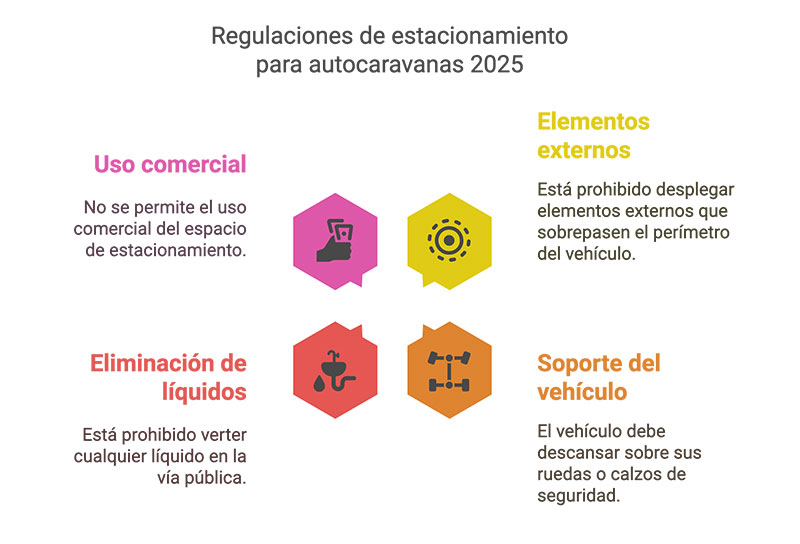 Esta normativa permite pernoctar y hacer vida dentro de la autocaravana, siempre que no se desplieguen elementos externos ni se realicen vertidos.