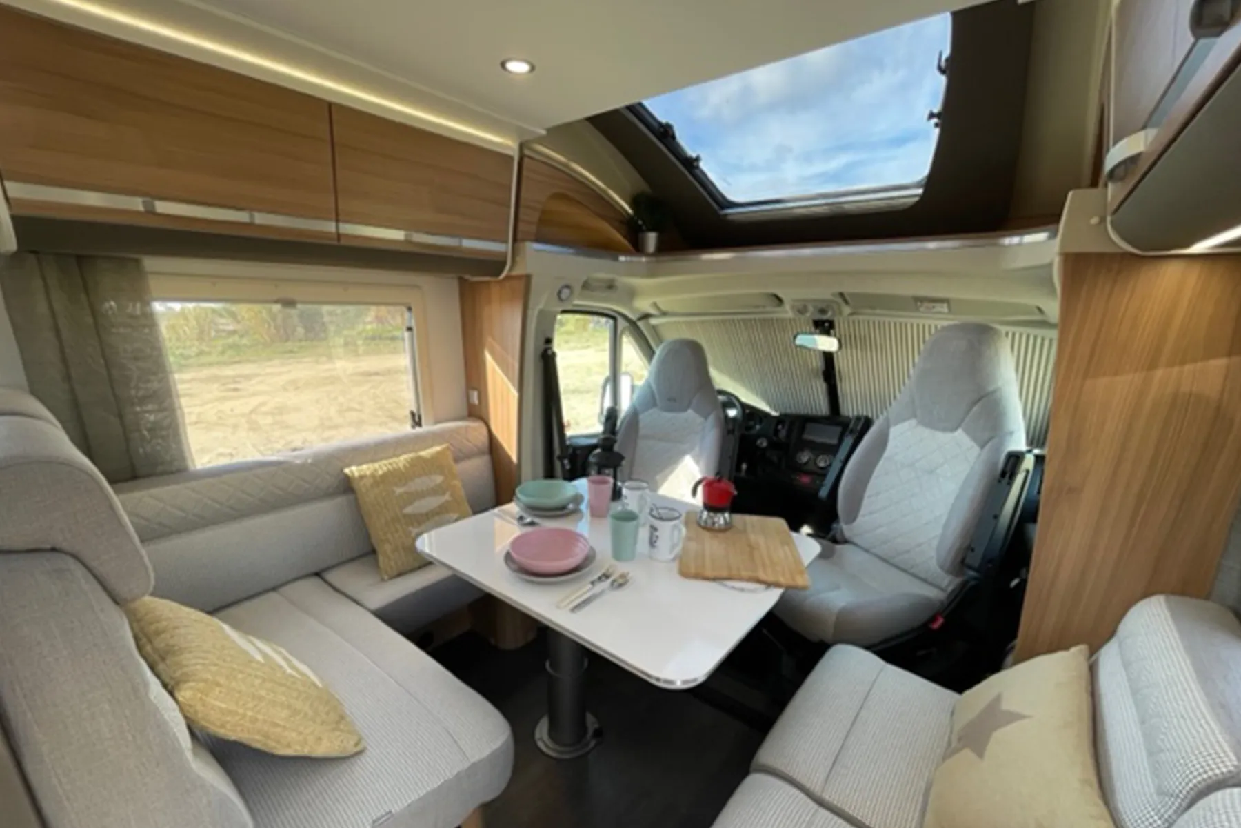Ari es la estrella de la corona con todas las comodidades y extras que puede tener una autocaravana. Sus ambientes se pueden dividir creando espacio dentro de una casita a cuestas, con una combinación de materiales y acabados de la más alta calidad.