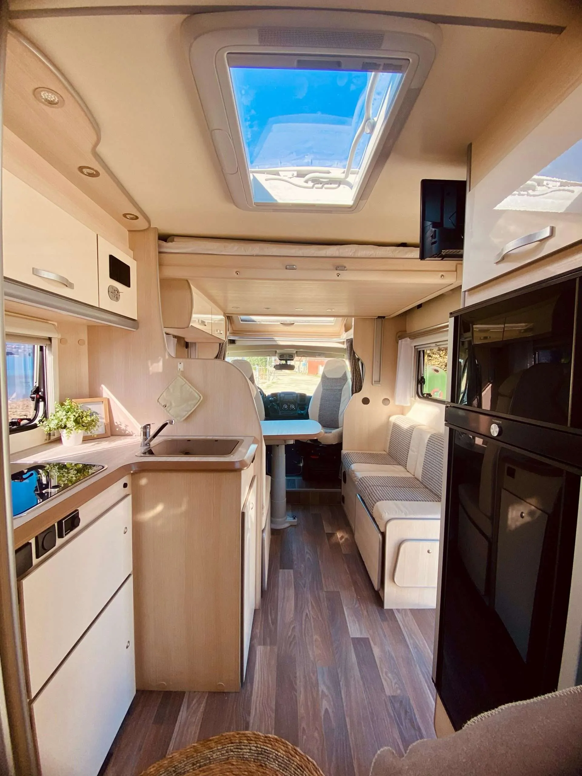 La autocaravana AERO 675 SD plus es perfecta para un viaje en familia o en pareja. Hasta 5  PLAZAS de viaje y  5 dormir con la opción de cama delantera de techo eléctrica. Dispone de un gran garaje con doble puertas En su interior la cama francesa y su cama basculante sobre el salón la hacen cómoda, su váter y su ducha separada crean ambientes de intimidad, su nevera grande con congelador y su cocina en L terminan haciendo de esta autocaravana de las más cómodas dentro su segmento.