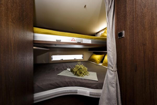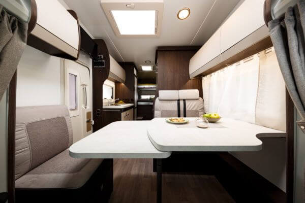 Alquiler de Autocaravana capuchina en Madrid. El Modelo Eurovan Capuchina C es ideal para 4 o 5 personas ya que las camas en ningún caso afectan al salón, que siempre está montado y funcional. Todo pensado para la comodidad de 5 personas , con baño completo con ducha amplia separada por mampara, frigo de gran tamaño, amplio salón comedor para 5 comensales con asientos giratorios de cabina. Placa solar, gran arcón trasero con acceso exterior, Tv con plato giratorio. Las camas de nuestras autocaravanas disponen de redes de protección para niños. Los modelos capuchinos tienen un consumo muy similar a los perfilados, en términos generales una autocaravana actual consume entre 10 y 11 litros a los 100 km, dependiendo del tipo de conducción , no es un factor decisivo en la elección de uno u otro modelo. La independencia de sus zonas dormitorio y la amplitud que ofrece esta autocaravana permite intimidad y bienestar para que todos los ocupantes disfruten de un viaje perfecto.