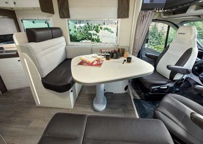 - Una de las grandes ventajas de la autocaravana Challenger Mageo 396 es que dispone de dos meses comedor en el que se pueden separar ambientes de trabajo, descanso y comedor.