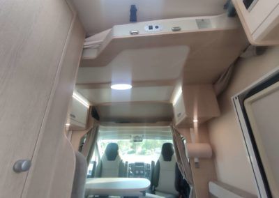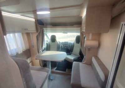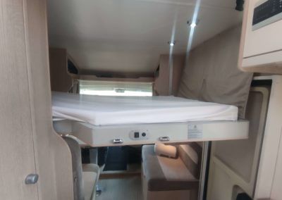 Alquiler en Tarragona. La autocaravana perfilada Blucamp FLY27S tiene dos camas gemelas individuales que se pueden unir y convertir en amplia cama doble-triple, mientras que la cama doble abatible de la parte central puede acomodar a 2 personas más cómodamente. También nos ofrece la posibilidad de convertir el salón en otra cama individual adicional en caso de necesitarse.