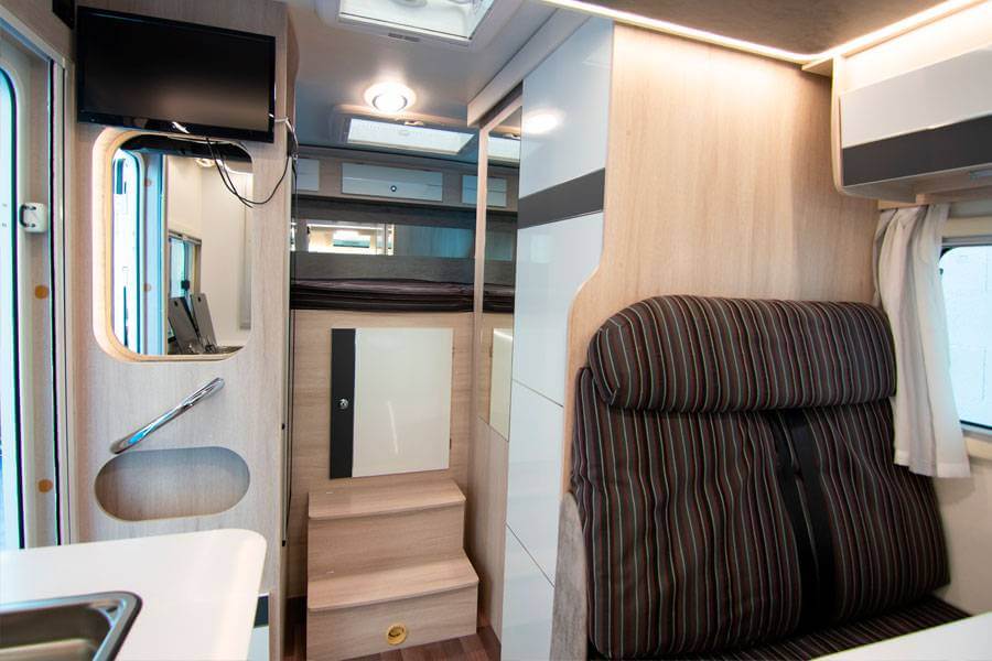 Alquiler de Autocaravana en Navarra. Esta Autocaravana perfilada XMK 590 II ideal para parejas gracias a su distribución interior. Ideal para la práctica de cualquier tipo de deporte, ya sea en plena naturaleza, montaña o costa, al ser un vehículo fácil y cómodo de manejar debido a sus reducidas dimensiones. Todo lo que necesitas para disfrutar del viaje en menos de seis metros de largo. Un vehículo único en el mercado, al reunir características tan atractivas como el eje ensanchado, una longitud de 5,99 metros, garaje muy espacioso y frigorífico de 150 litros.