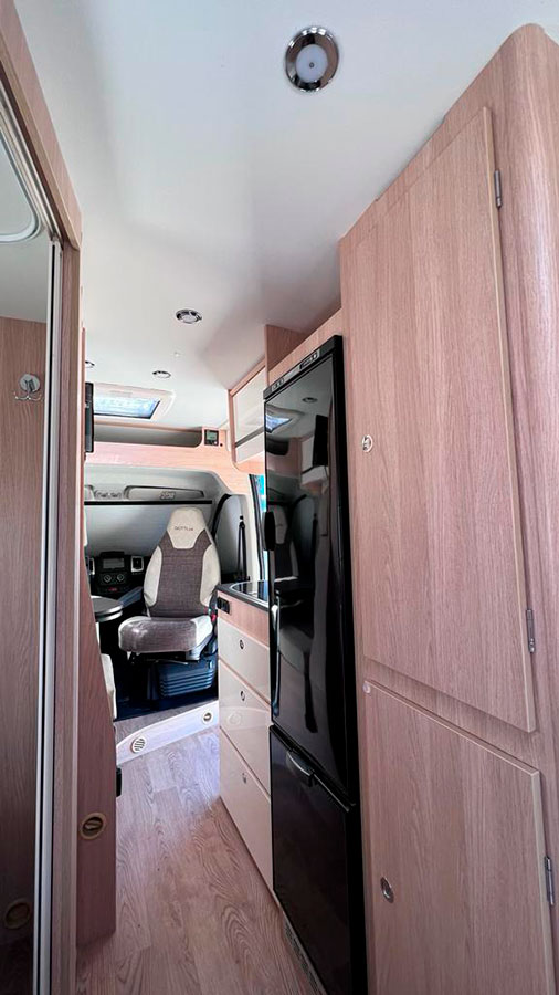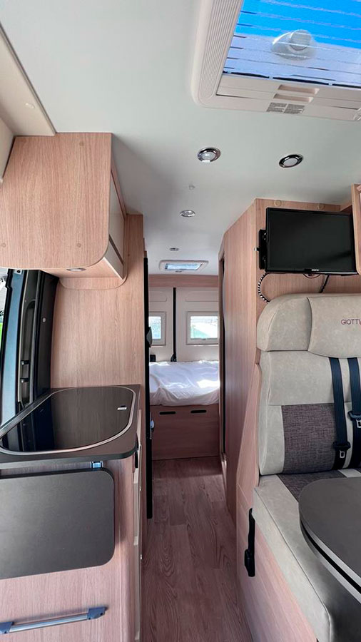 Alquiler de camper Giottivan Camper 60B es una furgoneta camper diseñada para los aventureros que buscan un vehículo compacto y versátil sin sacrificar comodidad. Este modelo ofrece un interior bien aprovechado que incluye una sala de estar acogedora, una cocina equipada con los elementos esenciales, un baño compacto con ducha y un área de dormitorio con una cama doble transversal en la parte trasera. Su diseño inteligente maximiza el espacio de almacenamiento y funcionalidad, permitiendo un viaje cómodo y práctico. Además, el Giottivan Camper 60B cuenta con acabados de alta calidad y tecnologías modernas que mejoran la experiencia de viaje, haciéndolo ideal para parejas o pequeños grupos que deseen explorar con libertad y confort.