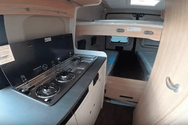 Furgoneta camperizada gran volumen con dos camas dobles de 1,57 x 1,85 m, y de 1,3 x 1,87 m.