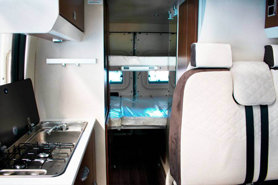 Alquiler de Camper en Navarra. La furgoneta HOURS 45 posee espacio para 4+1 personas, así que si eres familia numerosa o quieres invitar a algunos amigos a emprender nuevas aventuras no tendrás ningún tipo de problema. En segundo lugar la funcionalidad, la comodidad, la optimización de los espacios. Cuenta con una cocina con 2 fogones, un amplio frigorífico de serie de 90 litros, una mesa extraíble y abatible; un baño con inodoro y el interior está lleno de armarios y altillos para que no falte de nada en tu viaje.