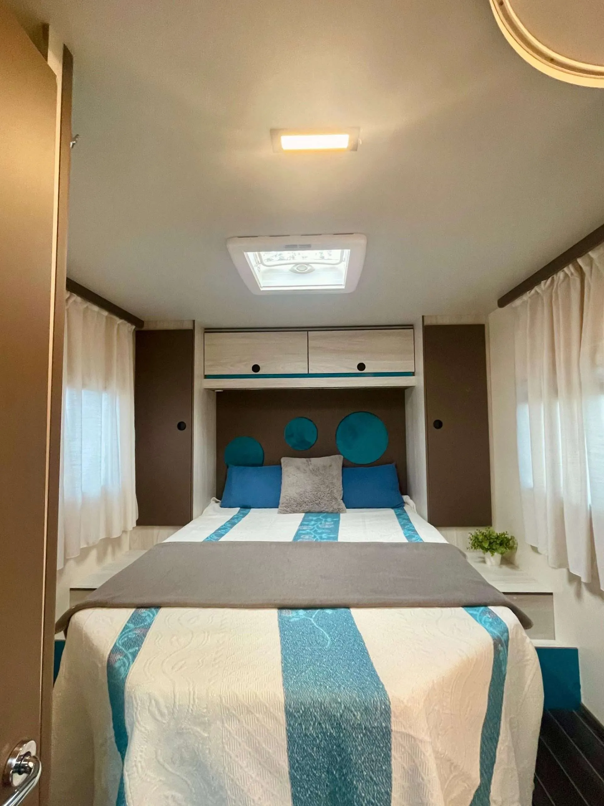 La Rimor Killig 69 Plus es una fantástica autocaravana con cama isla, con 4 plazas para viajar y 4 2plazas para dormir ,equipada con un potente motor Ford de 170 cv y cambio automático. Tiene un cómodo baño con ducha separada y cama eléctrica en el salon,sin duda hace de esto, una autocaravana muy cómoda para un viaje en familia