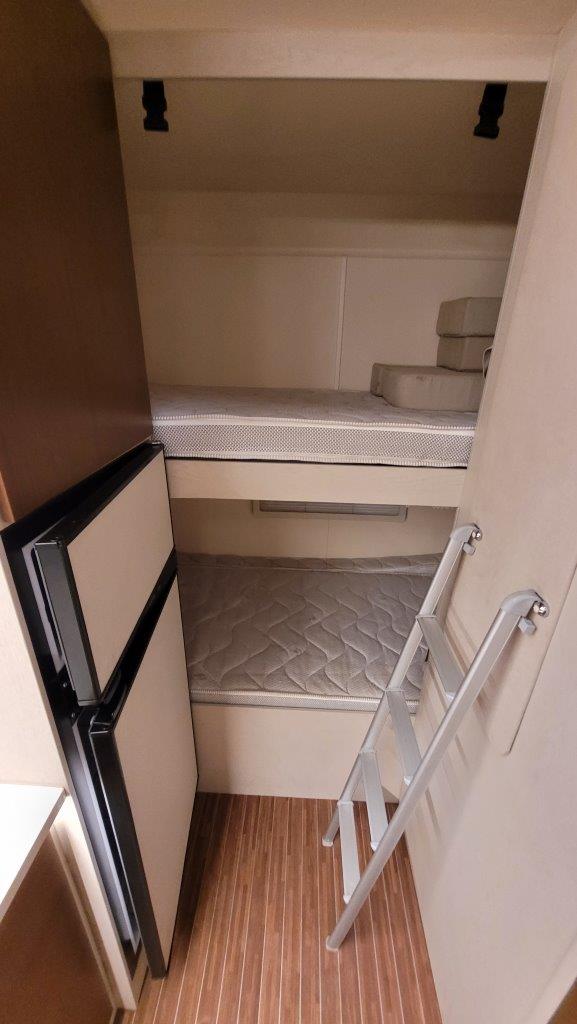 Con una amplitud sin igual en todo el mercado, tendrás capacidad para todo lo que imagines. Cama de matrimonio sobre cabina, litera en parte trasera, cama de matrimonio en salón y cama individual infantil en el segundo salón. El baño cuenta con ducha separada del WC y la cocina completa con nevera grande de 150L, doble comedor completo y espacioso, también dispones de servicio de conectividad y wifi portátil para que no termines de desconectar del todo …