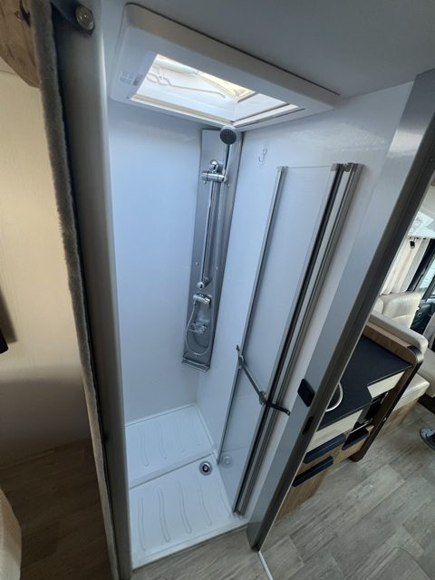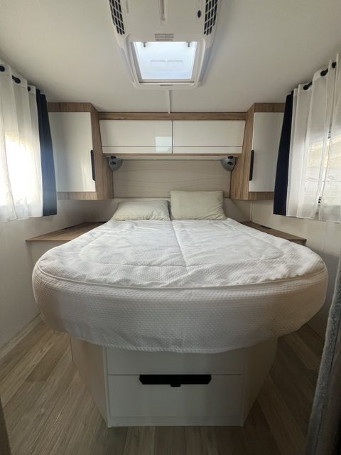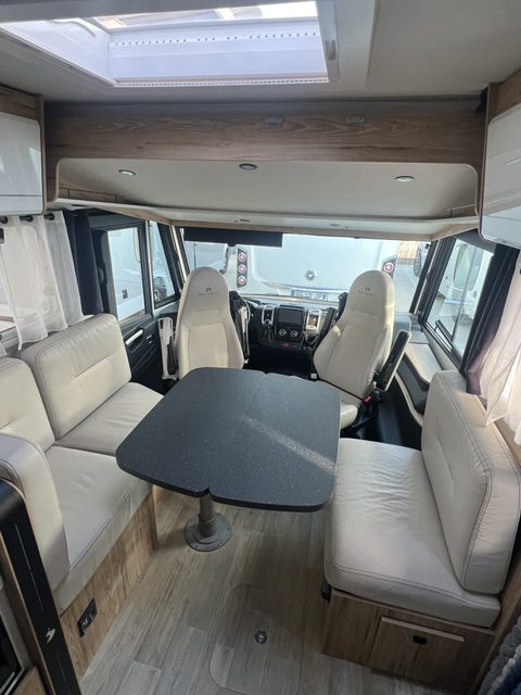 Autocaravana integral de 4 plazas. Gastos de gestoría 554€. Cuenta con: Motor FIAT 160CV, GLP, toldo, ducha exterior, retrocámara, equipo multimedia, horno, claraboya panorámica, cambio automático, aire acondicionado dometic, batería de litio 280 Amperios y convertidor de 3000W.