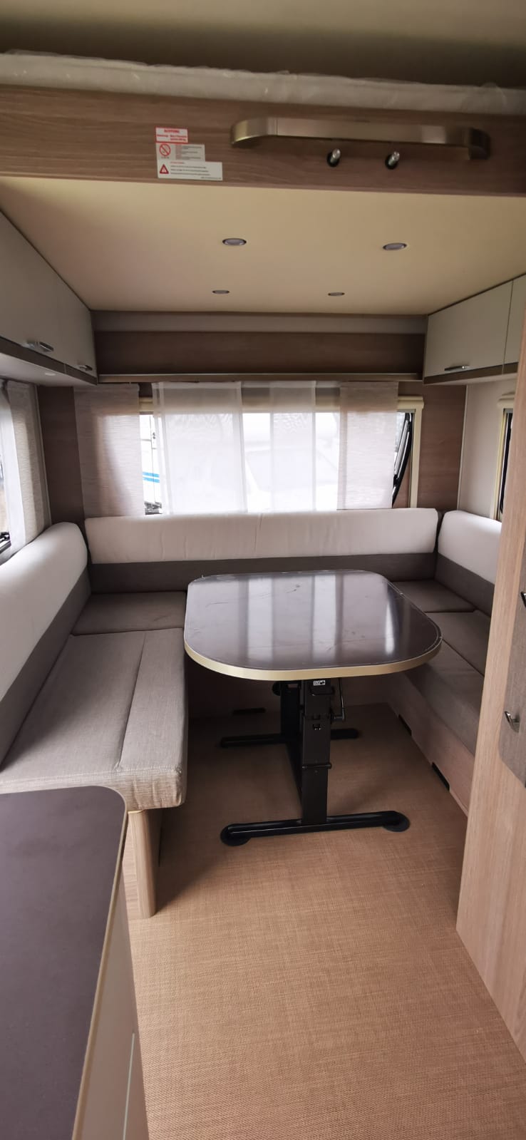 A pesar de estar prevista para hasta 7 personas, se trata de una caravana completa, con el espacio necesario para acomodarse perfectamente alrededor de su gran mesa. ¿Te has fijado en el tamaño de las literas? ¿Y en los focos LED que enmarcan la claraboya Midi-Heki? Estos detalles hacen, de la Premio Plus, la caravana más exitosa.