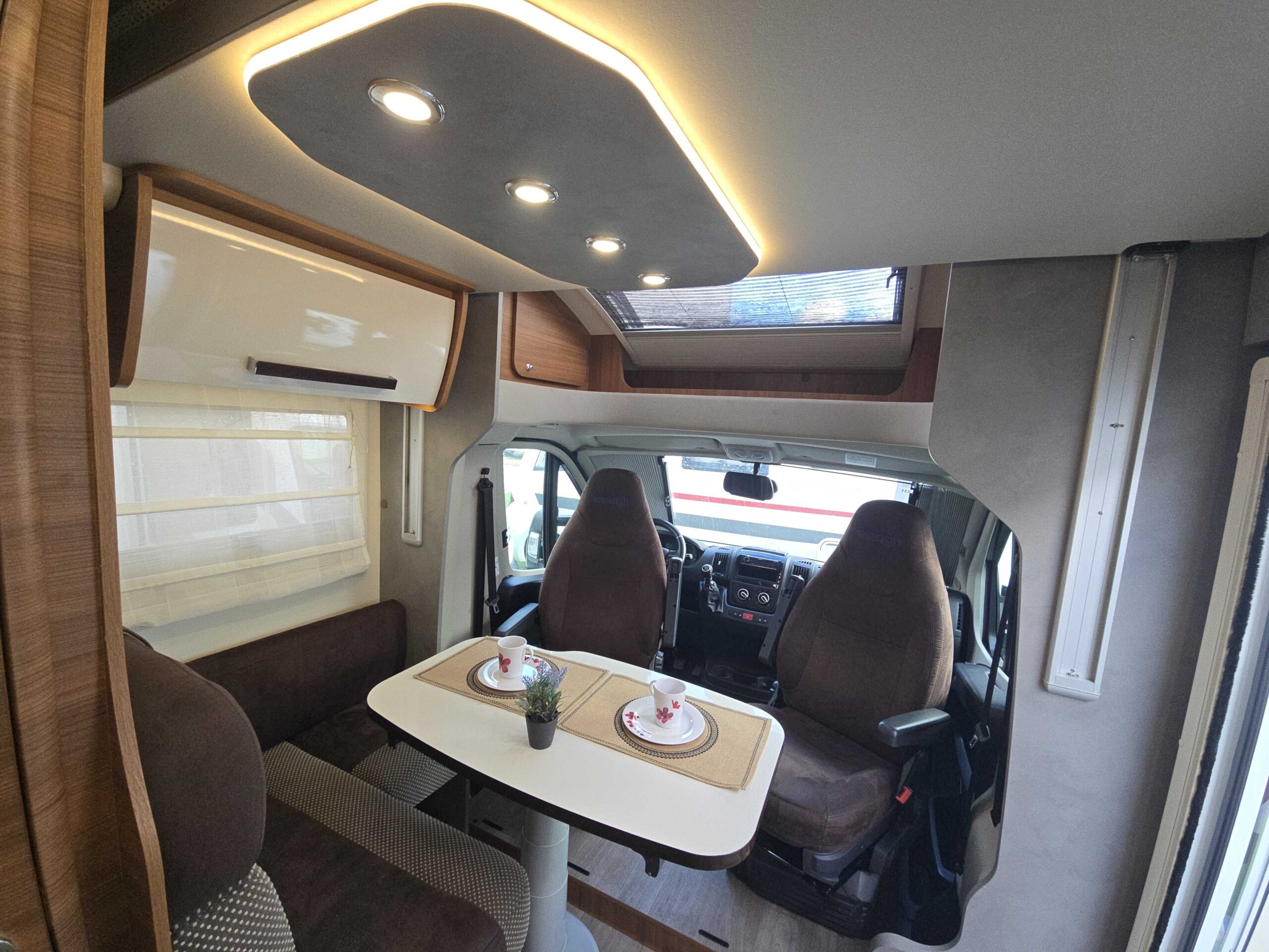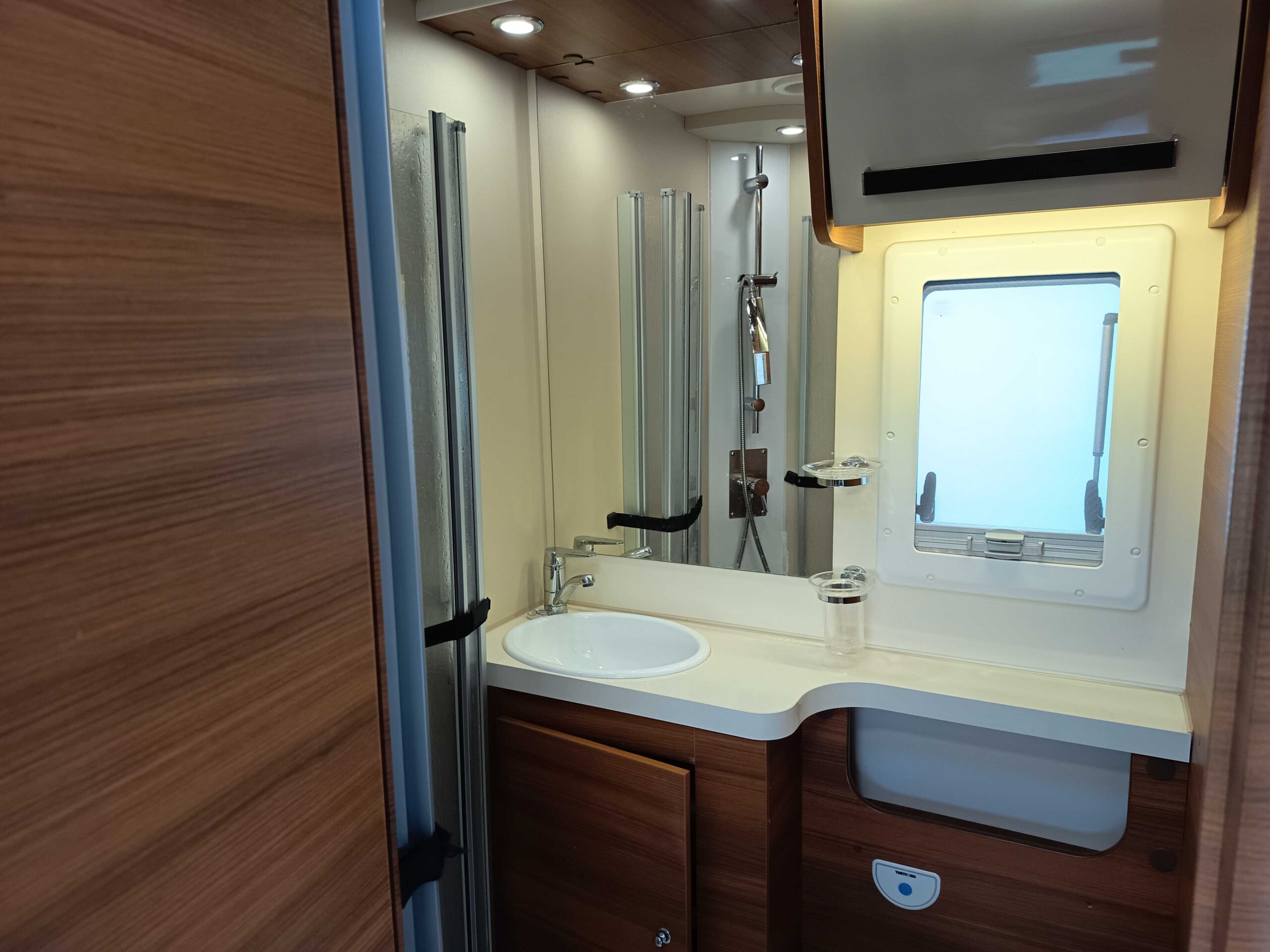 Con garaje grande para motos, control de crucero, climatizador manual, llantas de aleación de 16″, cámara de visión trasera, tracción plus, ESC + Hill Holder, doble airbag, luces antiniebla, espejos retrovisores eléctricos, oscurecedores de cabina tipo Remis y asientos giratorios. Equipada con enfriador VIESA Holiday III y Remis delantero.