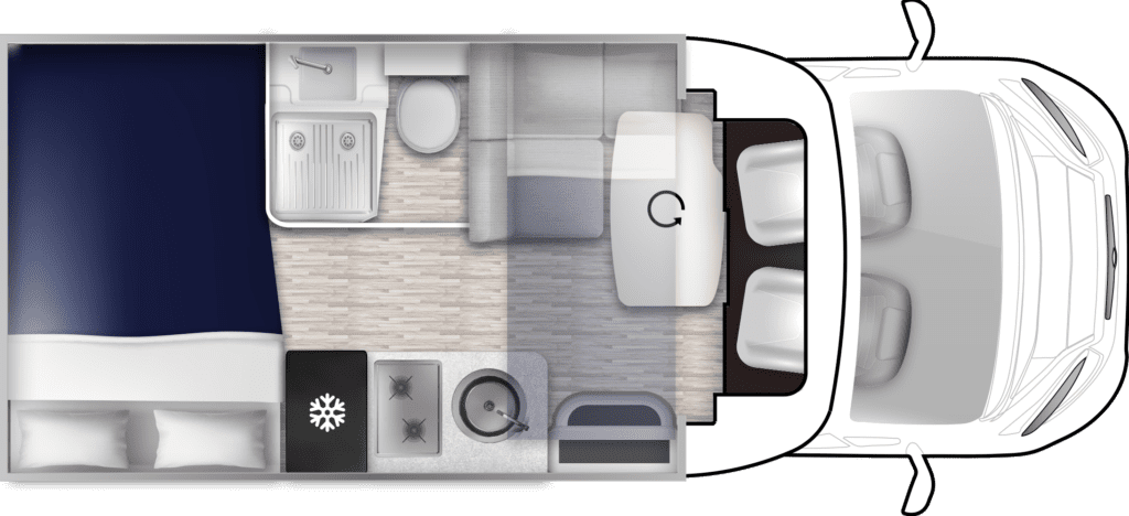 PERFILADA VANS de 6,20 METROS de 4 plazas. Con cama trasversal trasera, cama abatible delantera.