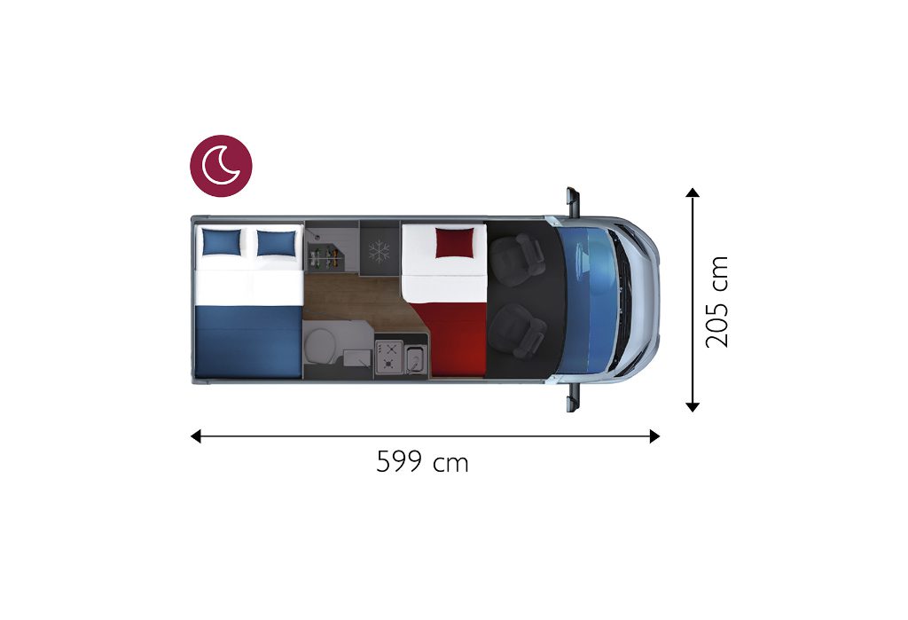 INTEGRADA 4 PLAZAS VIAJAR, 3 DORMIR. Motor euro 6.2, bajo consumo con máximas prestaciones. Todos los vehículos de Caravanea se limpian exhaustivamente con productos específicos para su desinfección además de tratarlos con una máquina de ozono y nebulización antes de cada alquiler.