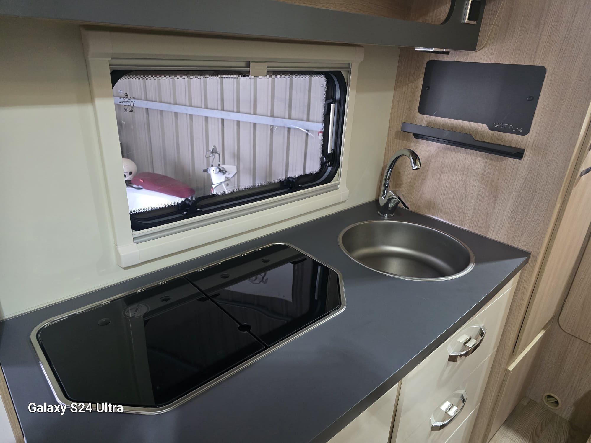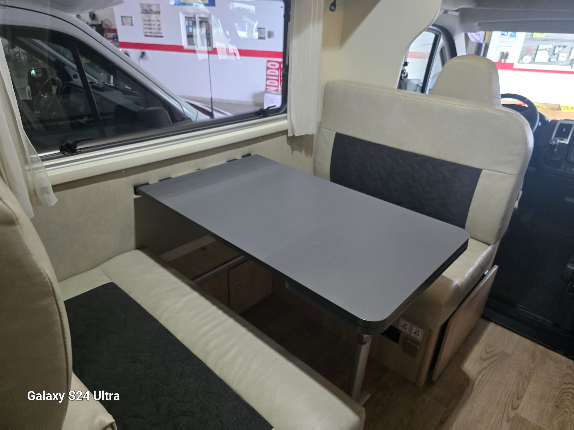 Vehículo con 6.99 mtr. de 6 plazas del 2024, con frigorífico grande trivalente automático , TV con Smart tv, evaporizado en habitáculo, navegador con cámara de marcha atrás. 6 plazas para viajar y dormir, dos camas de matrimonio siempre montadas, calefacción truma y agua caliente a gas.