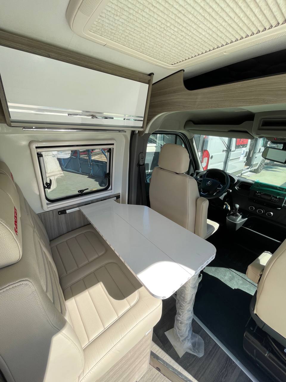 En esta ocasión se trata de la Randger R559, una fantástica camper carrozada sobre chasis de Renault Master con motor 2.3 l dCi de 150 cv con cambio automático! La distribución es la más buscada en camper del momento, se trata de una cama transversal trasera con baño completo y cocina completa y terminando en un amplio salón convertible en cama individual.