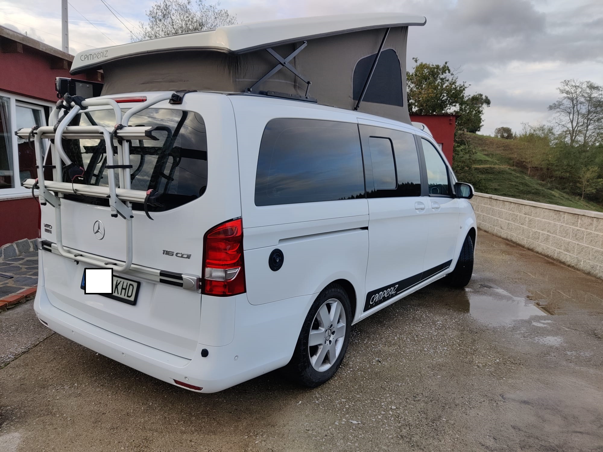 Se vende furgo camper!!! Mercedes Vito Tourer 116 CDI. Homologada como Turismo. Viajar a 120 kms/h. Altura: 1,875 metros. Posibilidad de entrar en parkings privados. Anchura: 1,928 metros. Longitud: 5,140 metros. Cabina con espejos y elevalunas eléctricos, ESP, Airbags, climatizador, equipo de audio, cierre centralizado, control de velocidad y limitador, bluetooth, caja de cambios manual. Viajar 5 personas (Ya que dispongo de otro asiento más). Dormir 4 personas ( Ya que dispone de cama en techo elevable y tras asientos). Equipada de la siguiente manera: Techo elevable marca REIMO. Calefacción de alimentación diesel marca WEBASTO. Bases giratorias en asientos delanteros. Toma de ducha interior y exterior. Fregadero. Cocina de gas de 2 fuegos. Nevera. Boiler marca ELGENA de 6 Litros. (posibilidad de agua caliente). Depósito de aguas limpias (53L). Depósito de aguas sucias (34L). Placa solar en el techo de la furgo. Batería auxiliar. 8 puntos de luz (5 tomas USB). Booster dometic. Toldo marca FIAMA, recién instalado. Porta Bicis marca FIAMA. Recién pasada la ITV. Mesa portable incorporada en portón trasero. Junto con la furgo se entrega módulo para ducha interior, cubre techo así como un avance para el portón trasero.