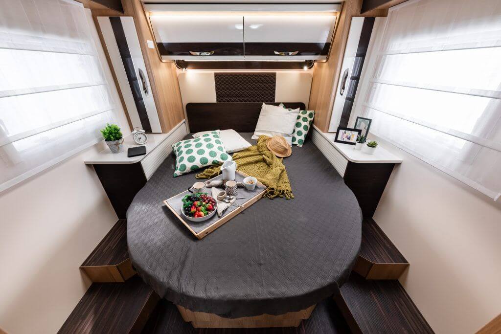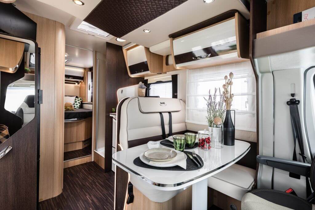 Venta en Logroño. La Autocaravana perfilada MCLouis 279 de 5 plazas de 7,45m de largo. Año 2022. Dispone de 1 cama isla en la parte trasera convertibles en 1 cama de matrimonio, 1 cama de matrimonio basculante y otra cama individual en el comedor.