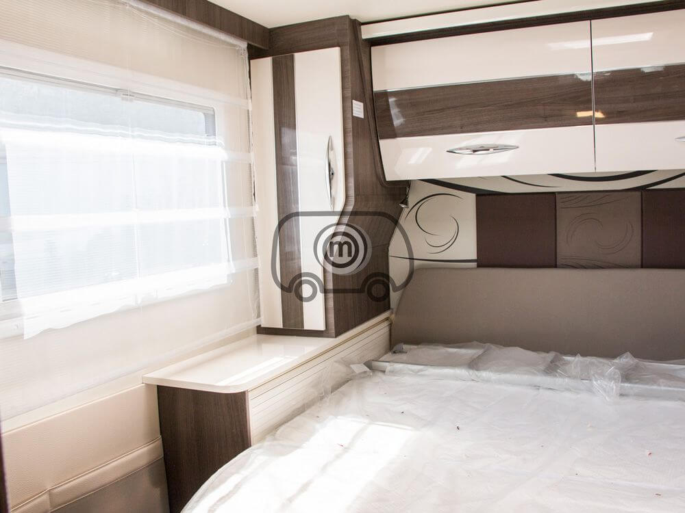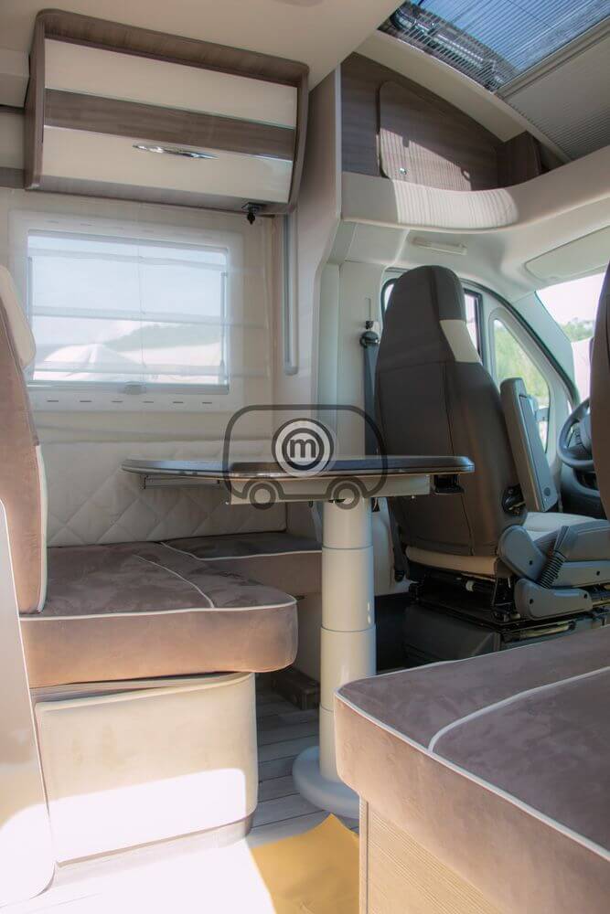 Venta de Autocaravana en Logroño. Autocaravana perfilada MCLouis 879 de 5 plazas de 7,45m de largo. Año 2022. Dispone de 1 cama isla en la parte trasera convertibles en 1 cama de matrimonio, 1 cama de matrimonio basculante y otra cama individual en el comedor.