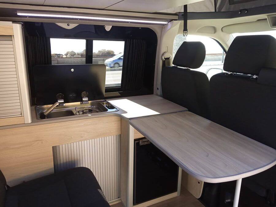 Venta en Alicante. El VW T6 ATLANTIC modelo 2018 posee todas las comodidades para tu viaje. Acabados en madera, una pequeña cocina equipada con nevera. Dispone de 5 plazas para viajar y 2 para dormir. AC en todo el vehículo y espacio de almacenamiento.