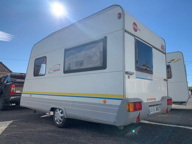 Venta en Murcia. Del año 2020. Caravana muy rutera 4 plazas, cama canapé, y salón convertible en cama de matrimonio, avance de invierno , calefacción, potty nuevo nevera trivalente, mosquiteras y oscurecedores en todas las ventanas más información en caravanas Mar Menor.